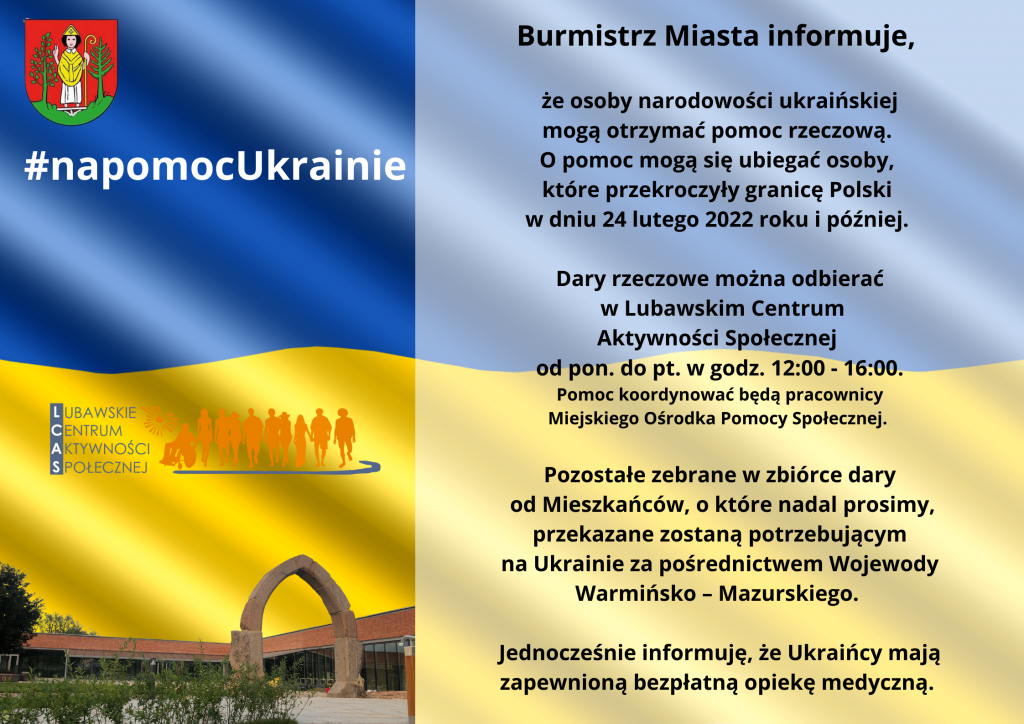 Komunikat Burmistrza Miasta Lubawa 1 marca 2022 Bez kategorii Komunikat Burmistrza Miasta Lubawa na temat pomocy osobom narodowości ukraińskiej